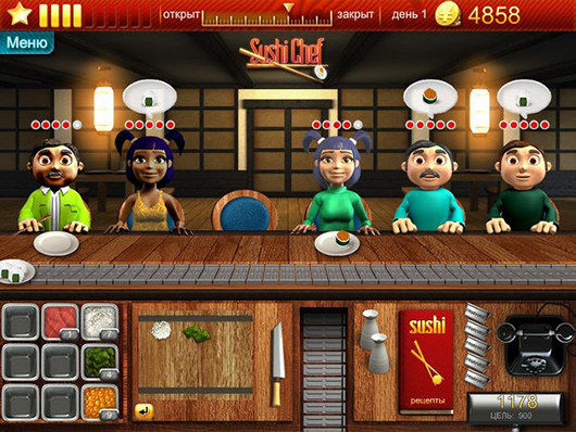 Откройте сеть ресторанов для любителей японской экзотики! Для начала наладим работу в вашем первом суши-баре. Закажите по телефону ингредиенты для роллов: рис, икру и нори - спрессованные водоросли. Сворачивайте роллы на бамбуковой циновке, смешивая компоненты изысканного блюда строго по рецептуре! Клиенты будут довольны и щедры, если их заказ вы выполните быстро и точно.